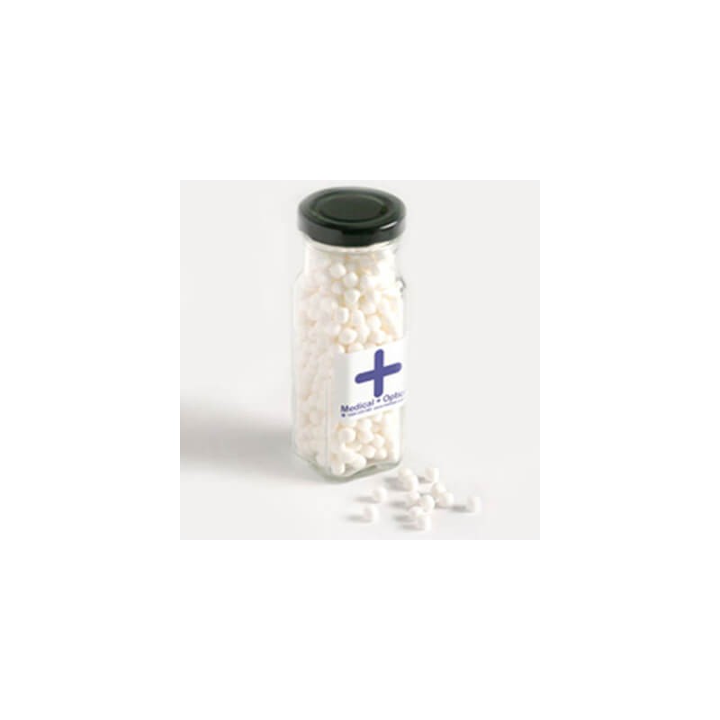 Small Square GlassJar Filled With Chewy Mints 100G