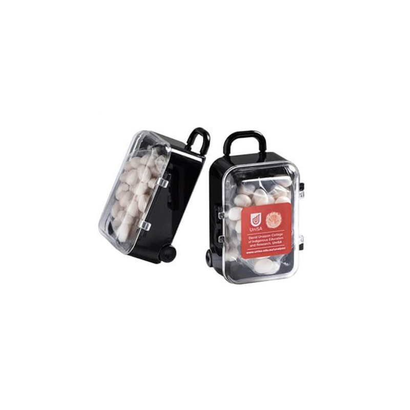 How to Request a Sample: If you’re interested in the 50g Chewy Mints Packed in Carry-On Case as a branded or decorated conference product, just reach out to us. Please note that we do charge for samples and therefore suggest that you request and quote and review that before requesting samples for evaluation. Our expert team will assist you with your sample request and ensure it aligns with your needs.