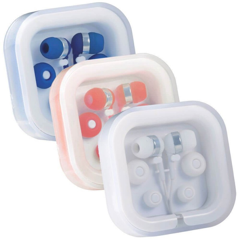 Available Colours: Blue earphone in clear case.,Red earphone in clear case.,White earphone in clear case.