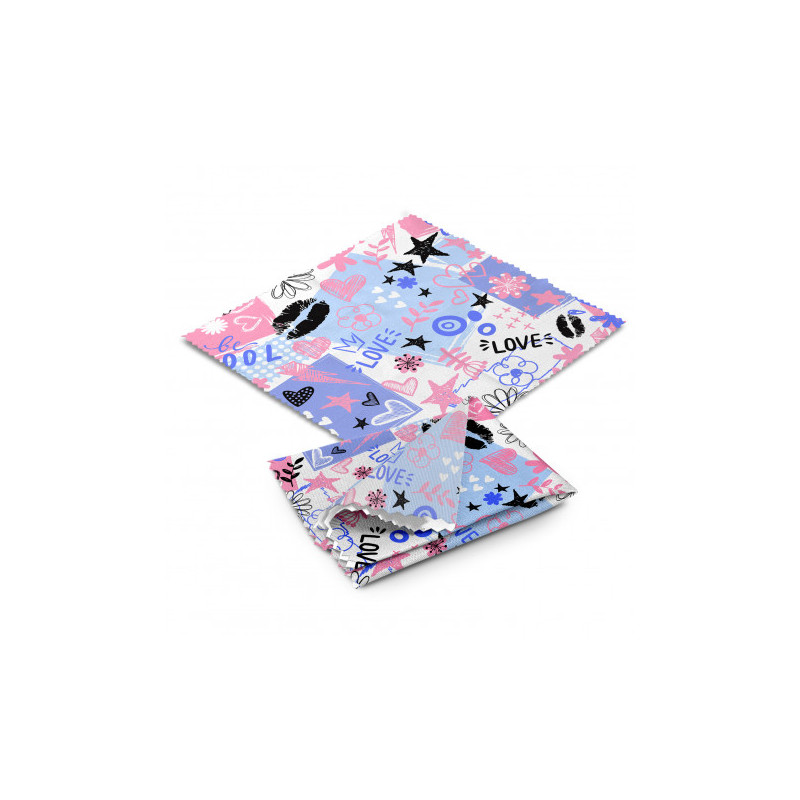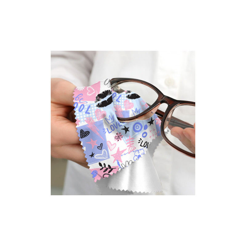 Economy 230gsm/95denier microfibre lens cloth with zig zag edging. Full colour custom design 1 side. Excellent for oil and moisture absorption. Suitable for sunglasses, eyeglasses, smart phones, e-book readers, camera lens, monitors and tablets. Made in China. White/Clear zip lock pouch available at additional cost.