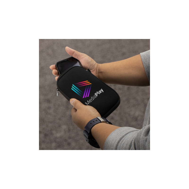 Robust phone pouch made from durable neoprene, which provides cushioning protection as well as being lightweight and water-resistant. The pouch has a slip pocket and will fit most modern phones.