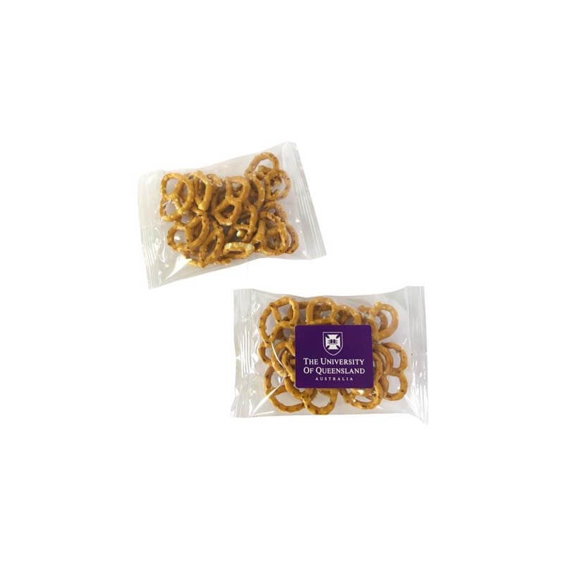 We know how important it is to see and feel a product before you buy, especially when ordering merchandise for conferences, for corporate and promotional gifts. We offer samples of our 25g Pretzels Bulk Pack Packed in Cello Bags to help you make an informed decision.