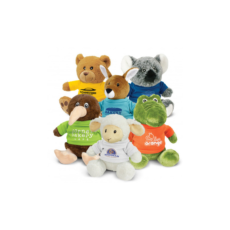 Soft kangaroo plush toy with a pouch, embroidered eyes and a polyester t-shirt which is available in eleven colours. Plush animals provide a cute and cuddly branding option and are great for brand recognition and spreading goodwill.