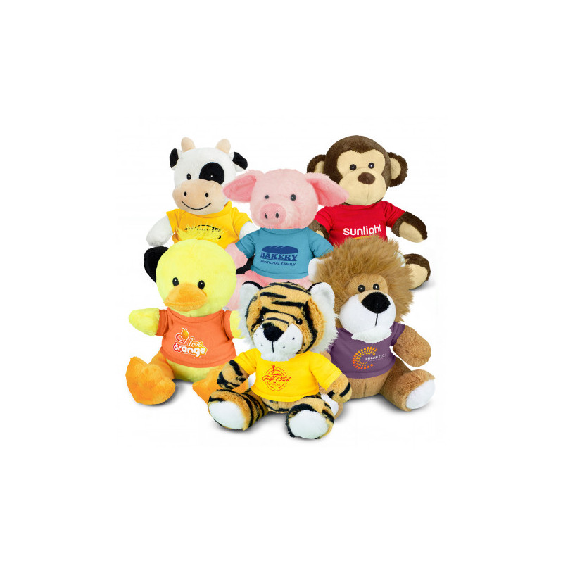 Soft tiger plush toy with embroidered eyes and a polyester t-shirt which is available in eleven colours. Plush animals provide a cute and cuddly branding option and are great for brand recognition and spreading goodwill.