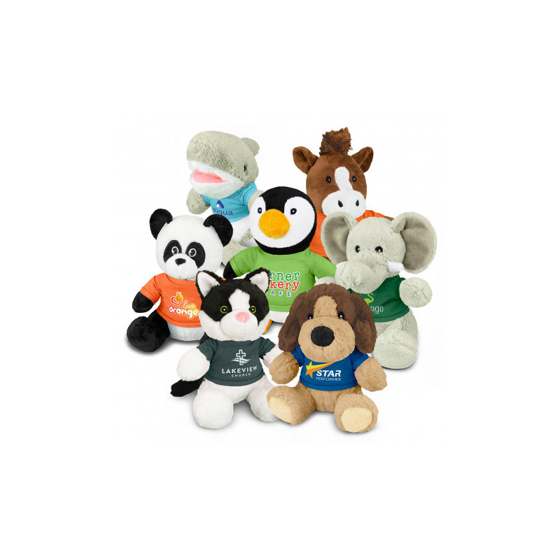 Soft elephant plush toy with embroidered eyes and a polyester t-shirt which is available in eleven colours. Plush animals provide a cute and cuddly branding option and are great for brand recognition and spreading goodwill.