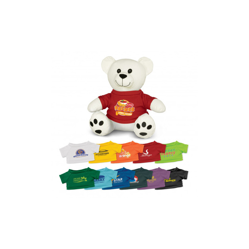 20cm soft teddy bear with embroidered eyes and a polyester t-shirt which is available in eleven colours. Cute, cuddly teddy bears are very popular for developing brand recognition and creating goodwill with people of all ages.