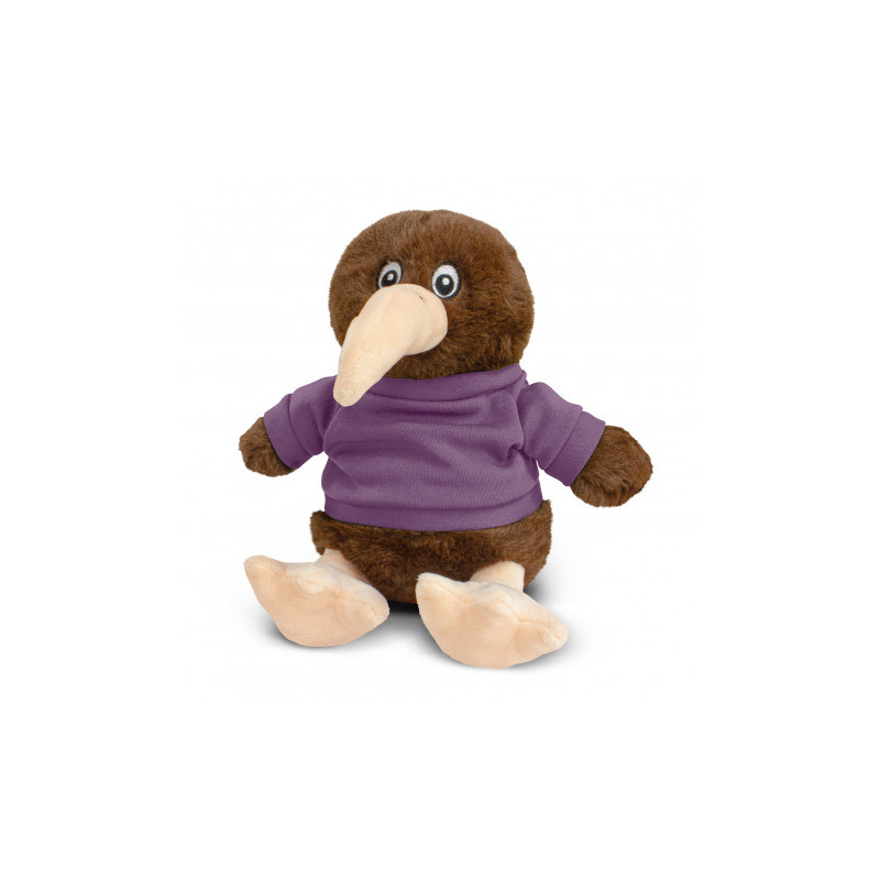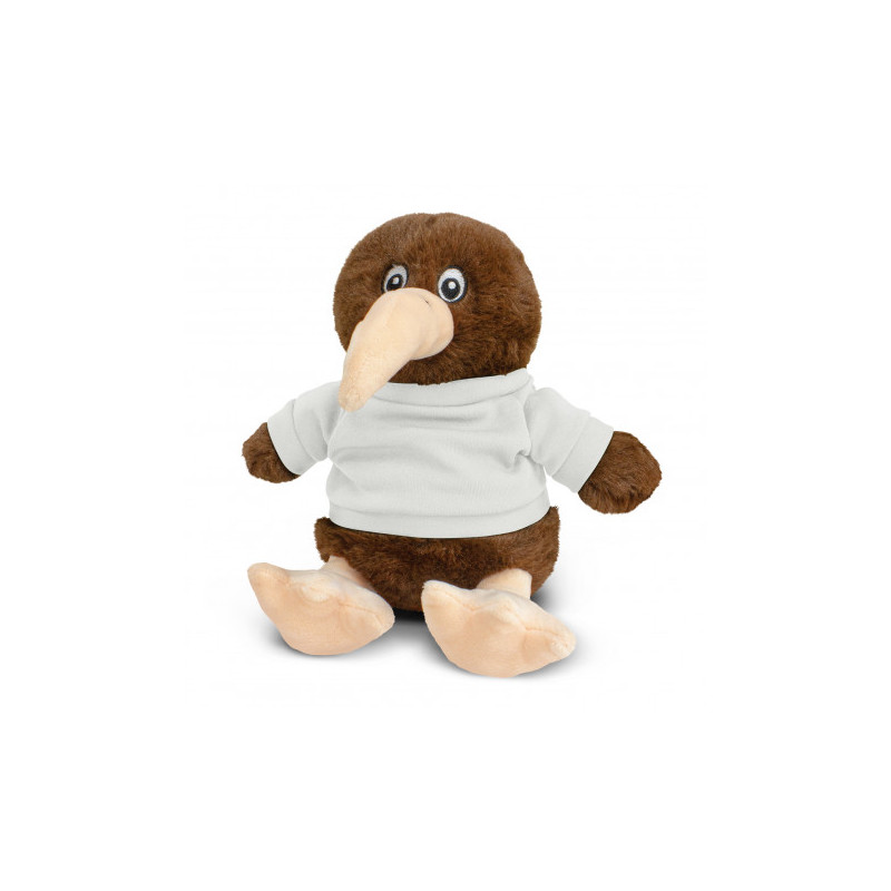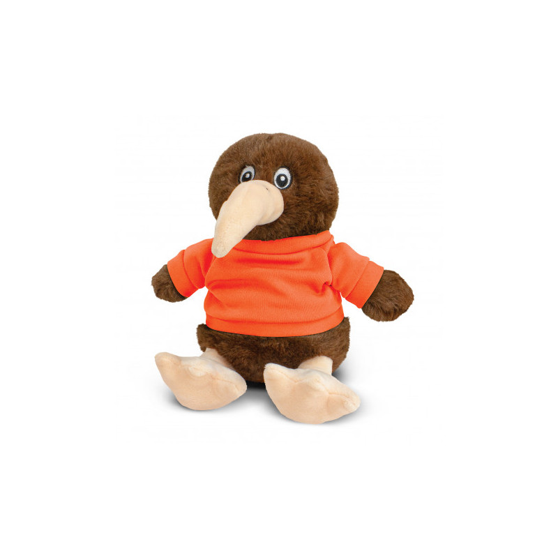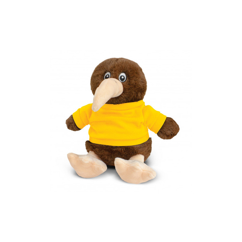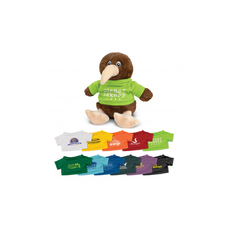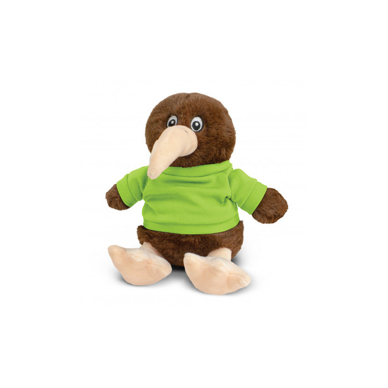 This soft sitting kiwi plush toy is made of soft plush cover and stuffed with fluffy stuffing, with bead eyes and optional polyester T-Shirt in 11 colours are available. This cute, cuddly kiwi plush toy is a great way to display your logo and get your message across.