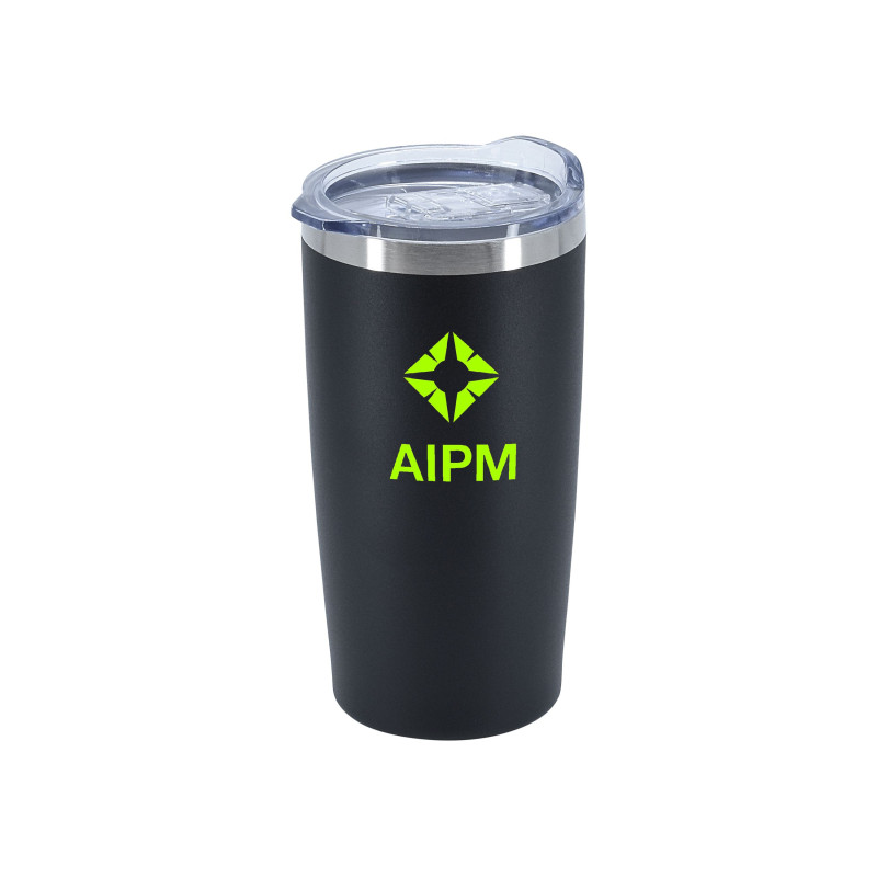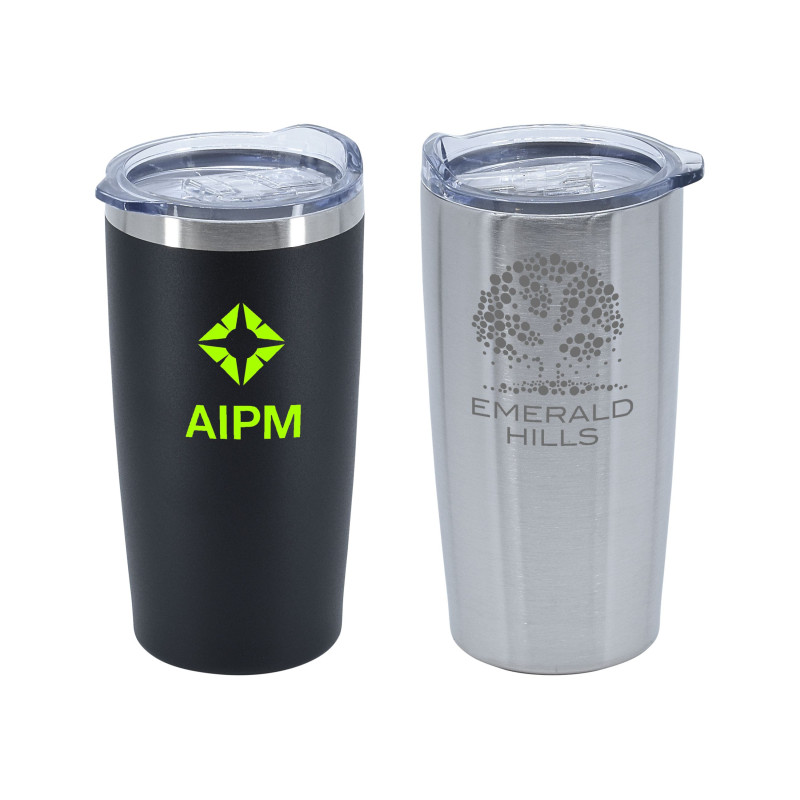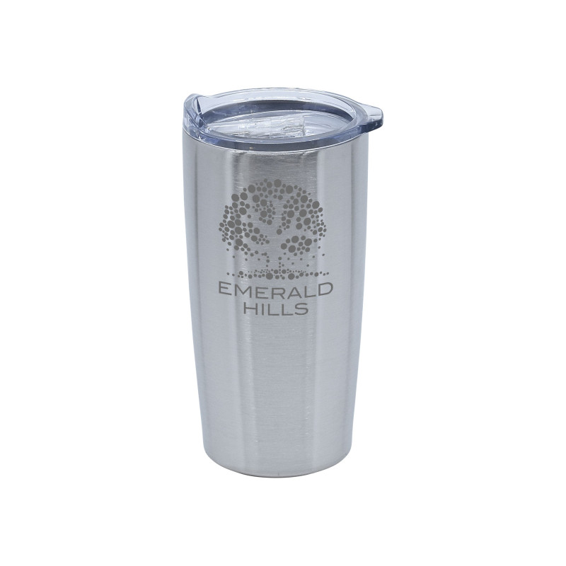 375ml 304 grade stainless steel mug, BPA free double wall with a push-seal plastic lid keeps drinks hot for longer, brush finishing engraves to a natural etch.