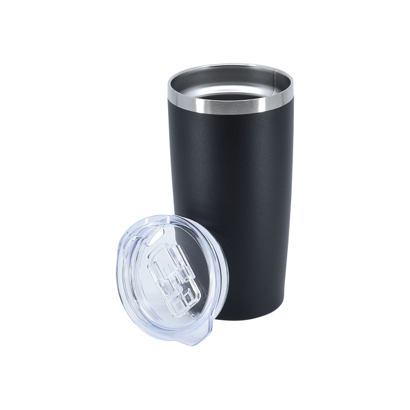 600ml capacity mug, double walled and vacuum insulated, it has a clear plastic lid with splashproof push-seal closure, made of 304 grade stainless steel. Gloss painted exterior and electrolysis interior, BPA free, cannot be microwaved and hand wash only.