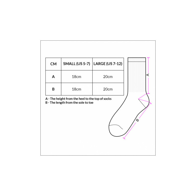 Jacquard knitted crew socks that are available in small (US 5-7) and large (US 7-12) sizes, perfect for casual dress or activewear. The socks are woven from a quality blend of 80% cotton and 17% polyester with 3% spandex added for stretch comfort. The body of the sock can be woven in up to four colours at no extra cost. Up to three of these colours can be...