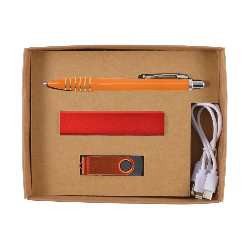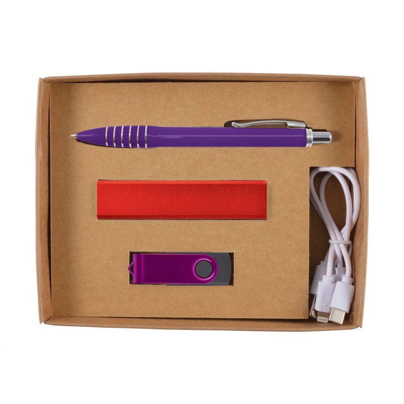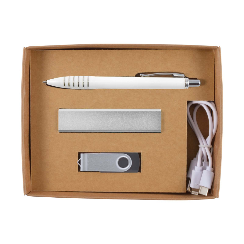 Superior gift set of 2000mAh Velocity Power Bank, Miami Ballpoint Pen and 4GB Swivel Flash Drive. Packed in 2 piece cardboard gift box with laser cut foam insert. Includes Micro USB cable for charging. 12 month limited technology warranty.