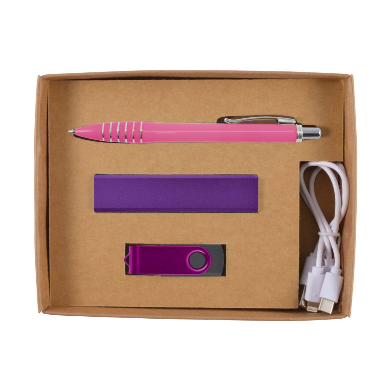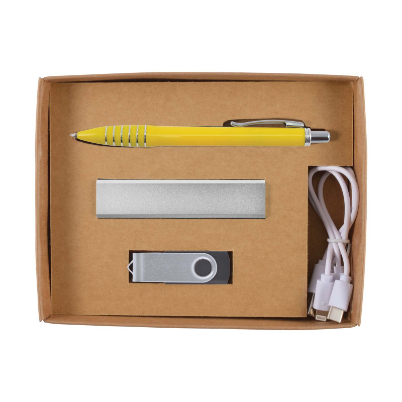 Gift set of Bling Ballpoint Pen, Velocity 2000mAh Power Bank, 4GB Swivel Flash Drive. Packed in 2 piece cardboard gift box with precision cut cardboard insert. Micro USB cable for charging included. Packaging proudly Australian Made.