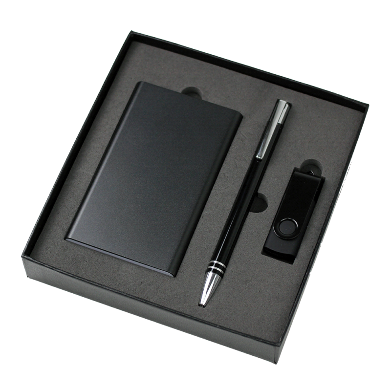 Gift set of Titan Pen, Velocity 2000mAh Power Bank and 4GB Swivel Flash Drive. Packed in 2 piece cardboard gift box with precision cut cardboard insert. Micro USB cable for charging comes standard. Packaging proudly Australian Made.