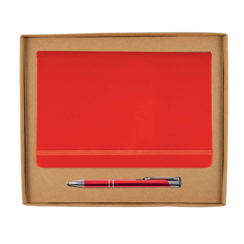 Gift set of Venture Bondi Notebook and Austin Pen with Stylus. Packed in 2 piece cardboard gift box with precision cut cardboard insert. Cardboard gift box proudly made and packaged in Australia.