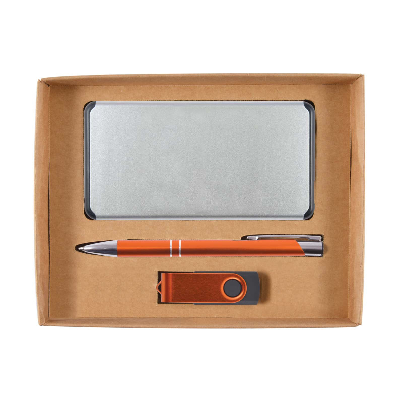 Gift set of 2000mAh Velocity Power Bank, Miami Ballpoint Pen and 4GB Swivel Flash Drive. Packed in 2 piece cardboard gift box. Includes Micro USB cable for charging. Packaging proudly Australian Made.