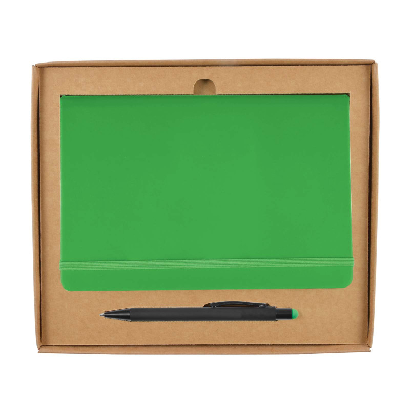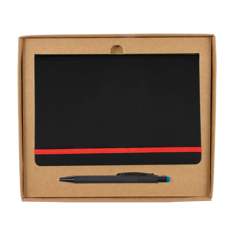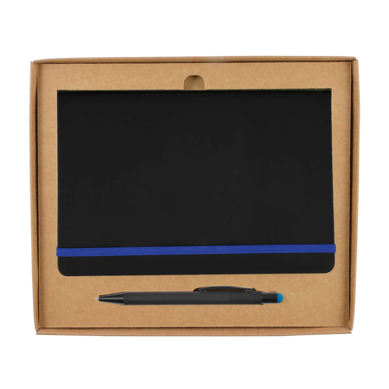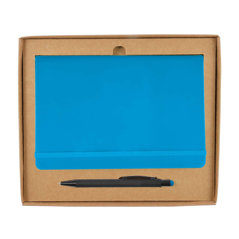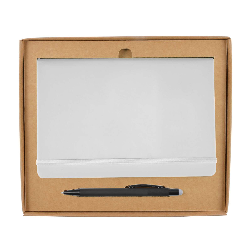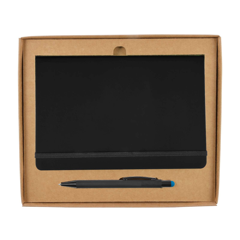Gift set of Venture Bondi Notebook and Austin Pen with Stylus. Packed in 2 piece cardboard gift box with precision cut cardboard insert. Cardboard gift box proudly made and packaged in Australia.