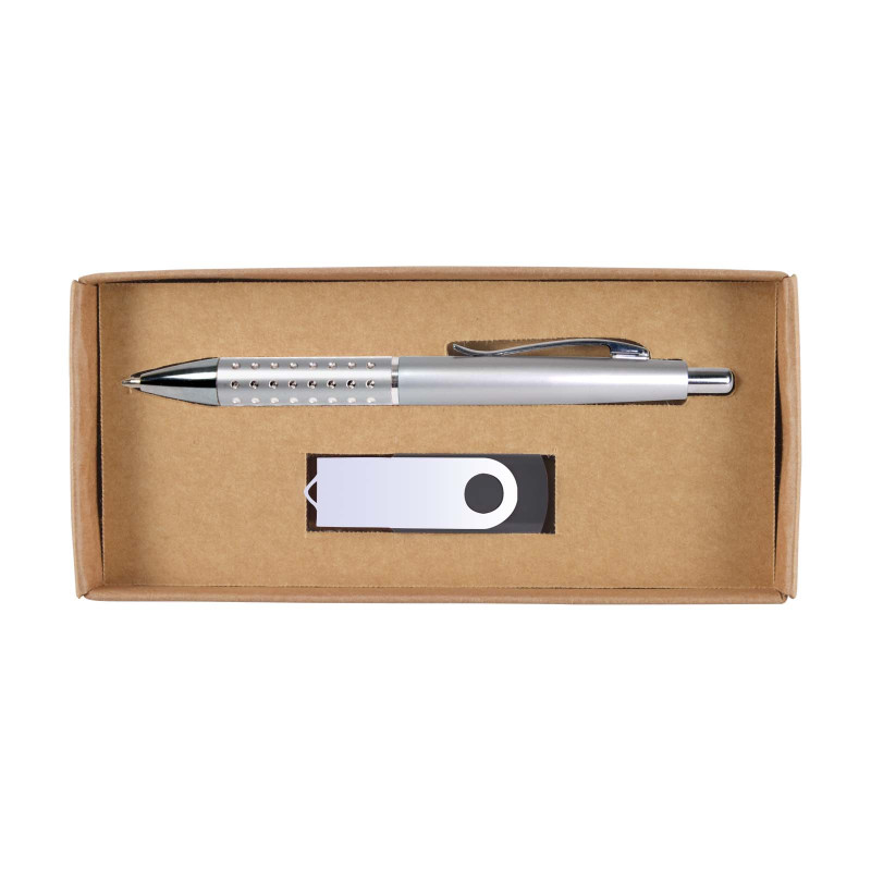 Gift set of Bling Ballpoint Pen, Velocity 2000mAh Power Bank, 4GB Swivel Flash Drive. Packed in 2 piece cardboard gift box with precision cut cardboard insert. Micro USB cable for charging included. Packaging proudly Australian Made.