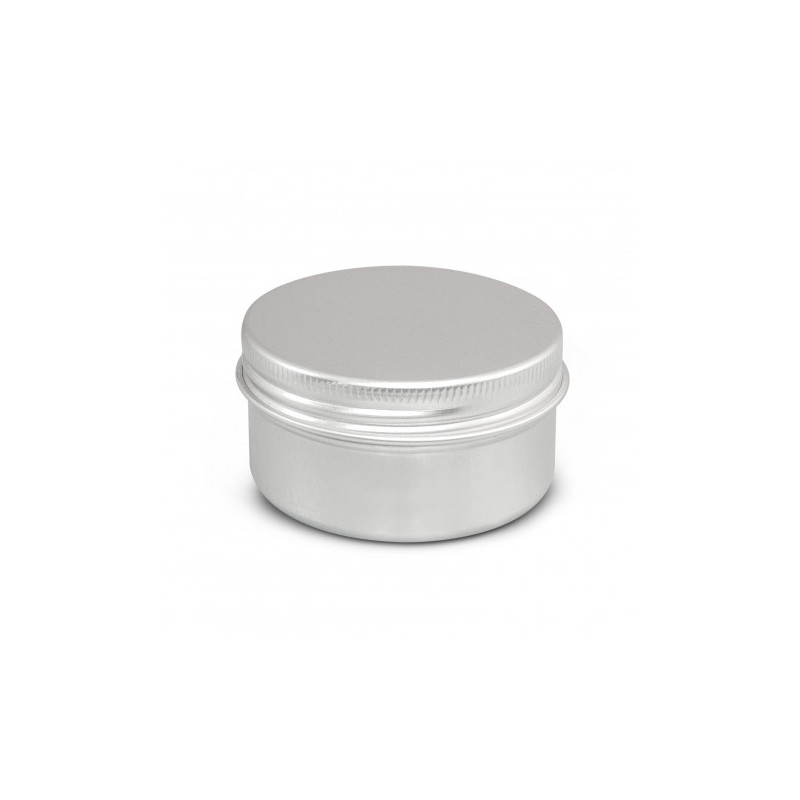 High-quality 35g aromatherapy vanilla-scented candle in handy travel tin with a secure push on lid. A warning and ingredients label is located on the base of the tin.