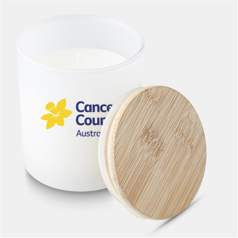 Give the gift of relaxation. These gorgeous vanilla-scented soothing personalised candles are crafted to provide ambient lighting and reduce stress. Designed with vibrant coloured frosted glass and a beautiful bamboo lid, you can do no wrong in choosing to brand with these candles, which are also available in all sizes to meet your brands needs. With a...