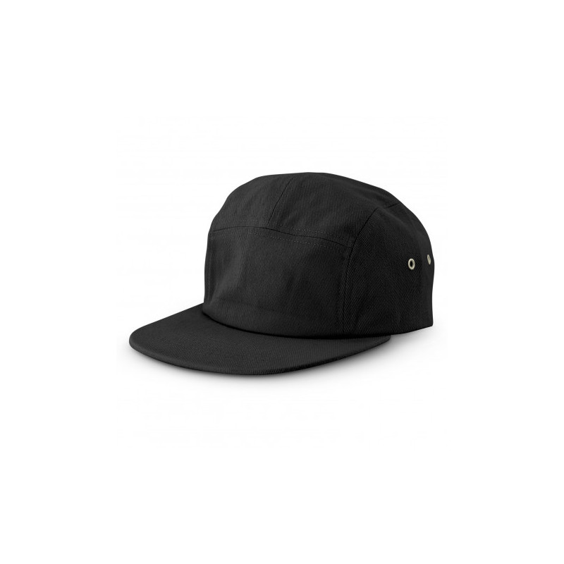 Stylish, five panel cap with a trendy flat peak. It is manufactured from acrylic and has smart silver eyelets, a sweat band and an adjustable Velcro closure which allows one size to fit most people.