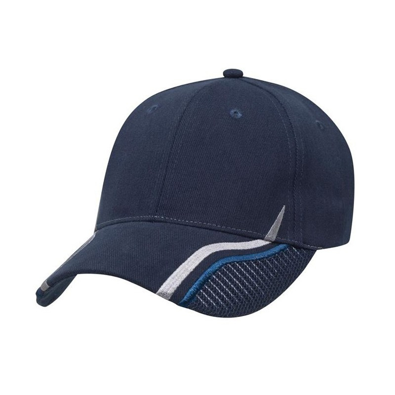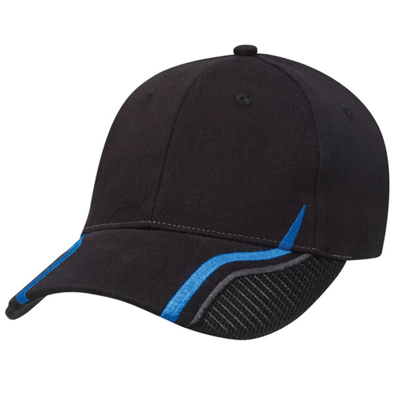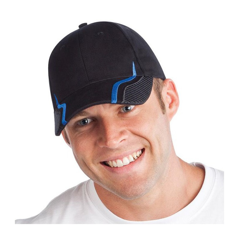 Cap in brushed cotton twill, with pre-curved peak and adjustable Velcro® strap at back. 6 Panel structured Cap|Pre-curved peak|Adjustable Velcro strap at back. |Product Material: 100% Cotton