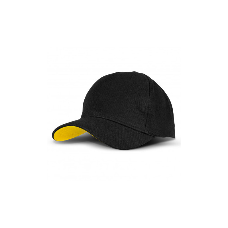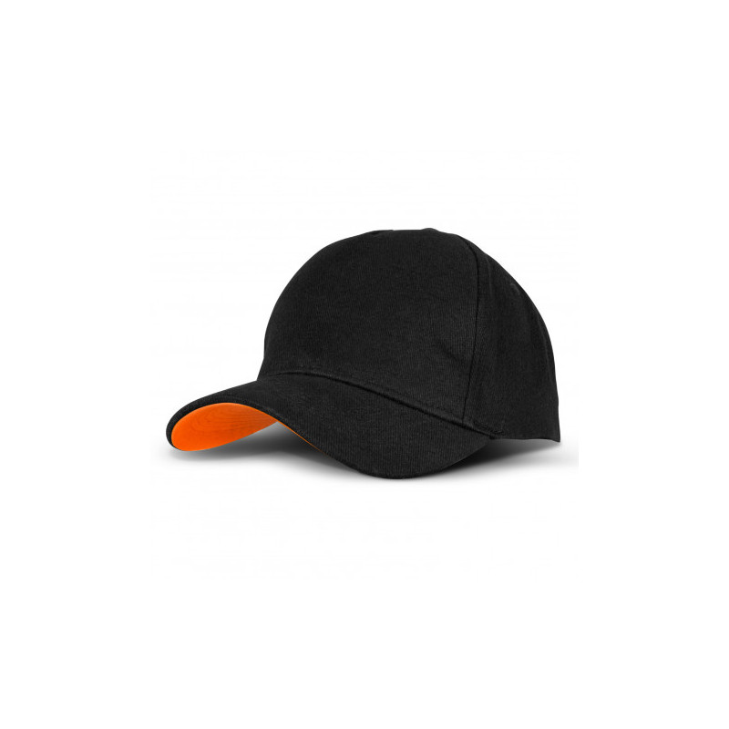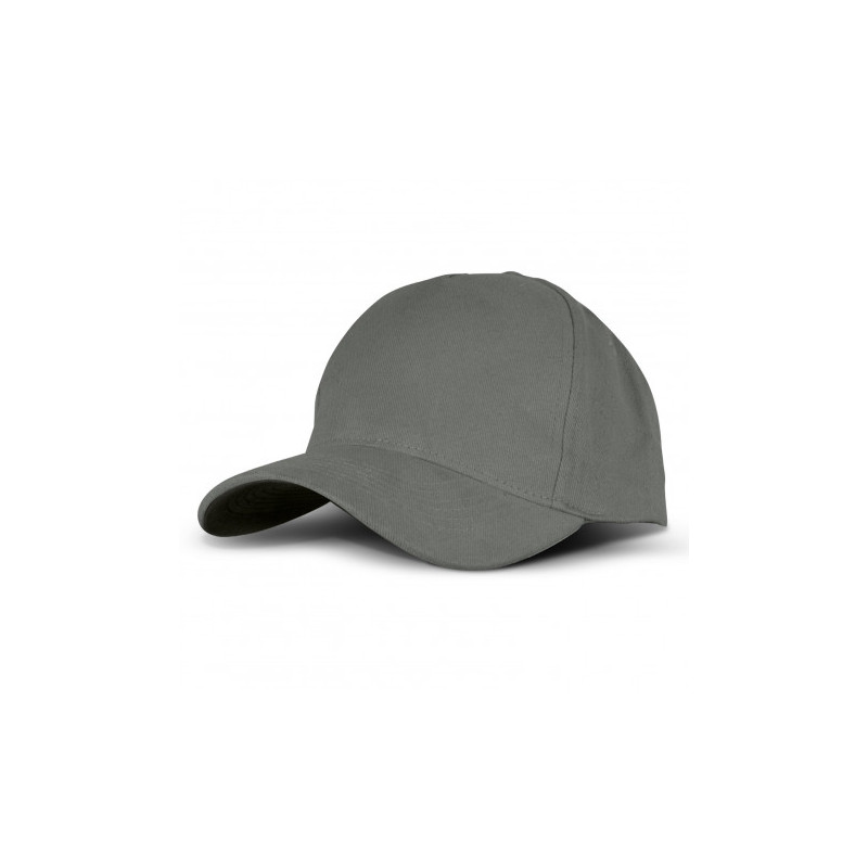Premium five panel cap made from 100% heavy brushed cotton. It has a pre-curved peak, embroidered eyelets, a sweatband and an adjustable velcro closure, allowing one size to fit most people.