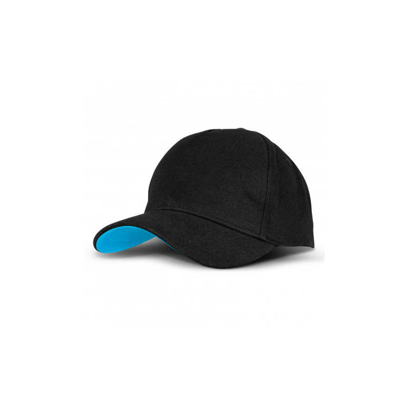 Stylish 100% Cotton 5 panel curved peaked cap with a coloured stitching that matches the logo. It features an adjustable stainless-steel buckle, ensuring a comfortable fit for most head sizes.
