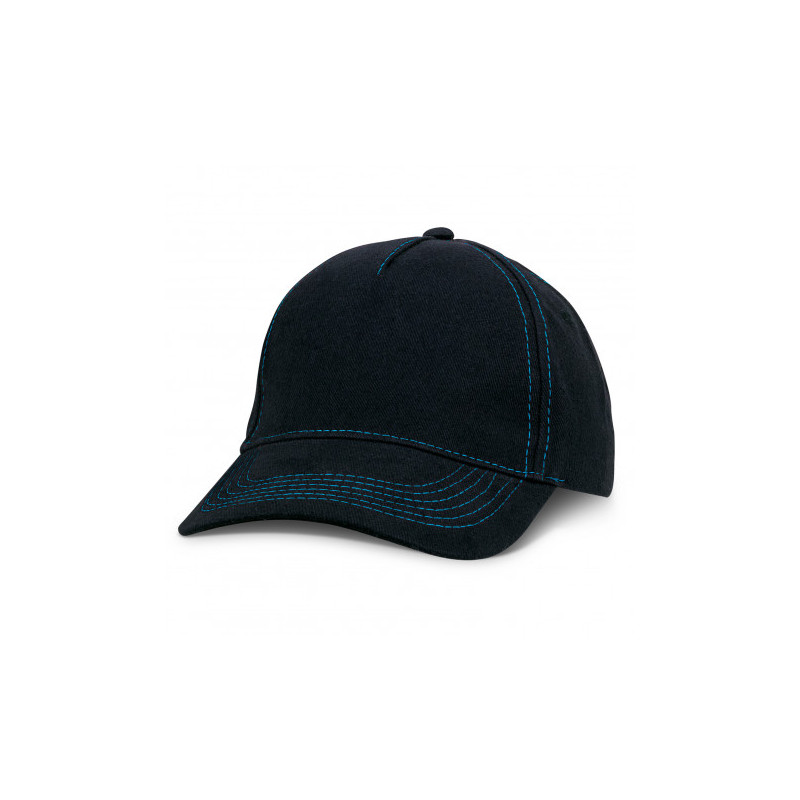 Premium quality structured five panel cap which is manufactured from 100% cotton. It features a coloured trim of your choice, embroidered eyelets, a pre-curved peak, a sweat band and an adjustable Velcro closure which allows one size to fit most people.