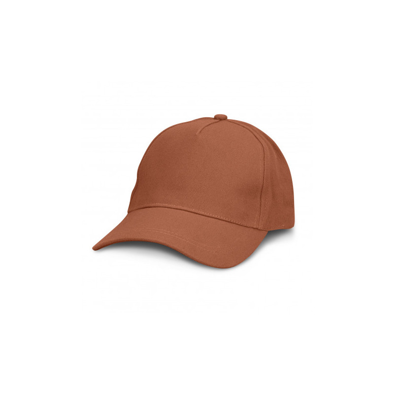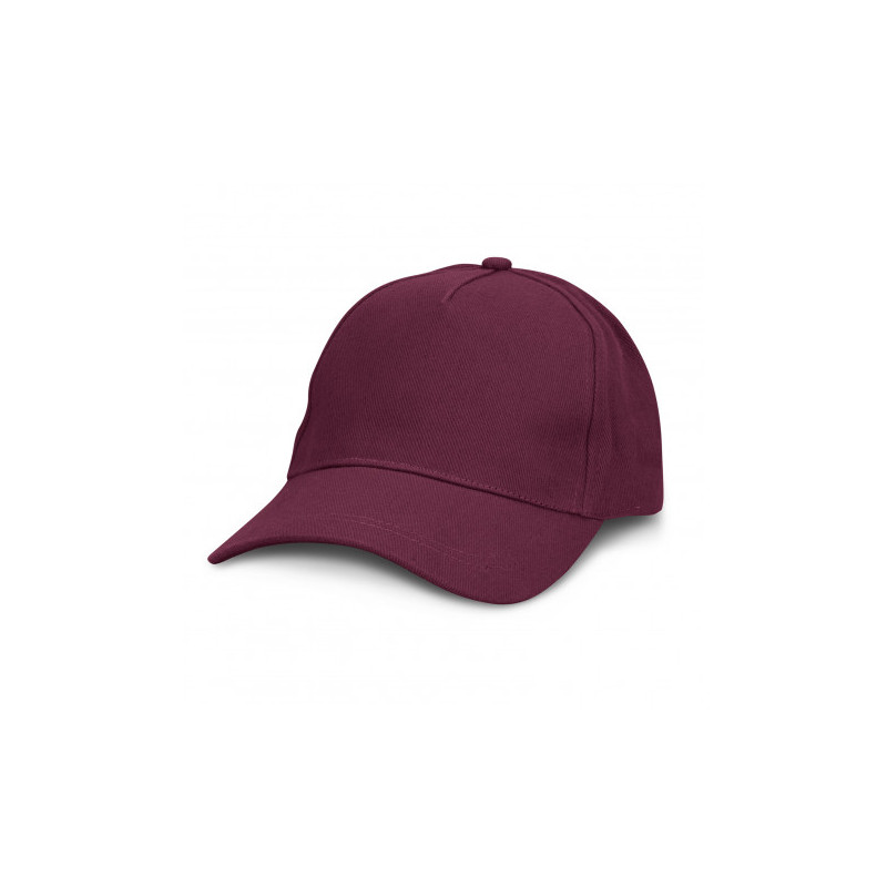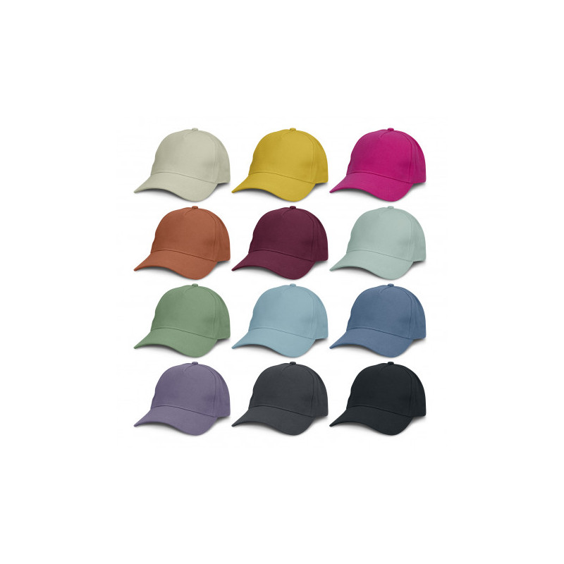 Premium quality structured five panel cap which is manufactured from 100% cotton. It features a coloured trim of your choice, embroidered eyelets, a pre-curved peak, a sweat band and an adjustable Velcro closure which allows one size to fit most people.