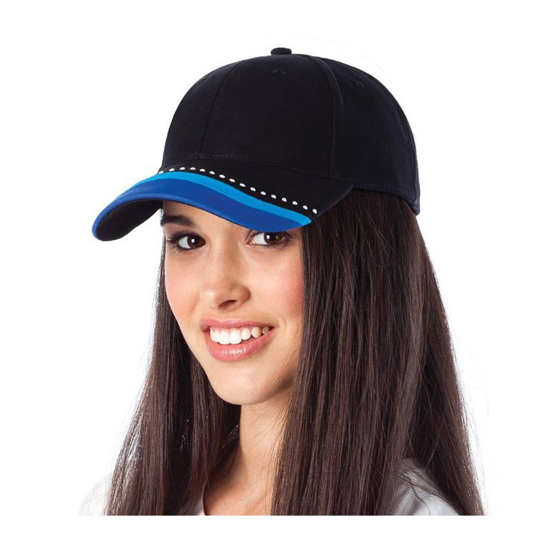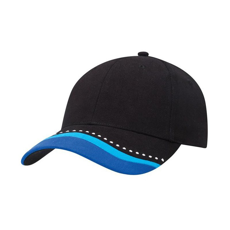 Stylish 100% Cotton 5 panel curved peaked cap with a coloured stitching that matches the logo. It features an adjustable stainless-steel buckle, ensuring a comfortable fit for most head sizes.