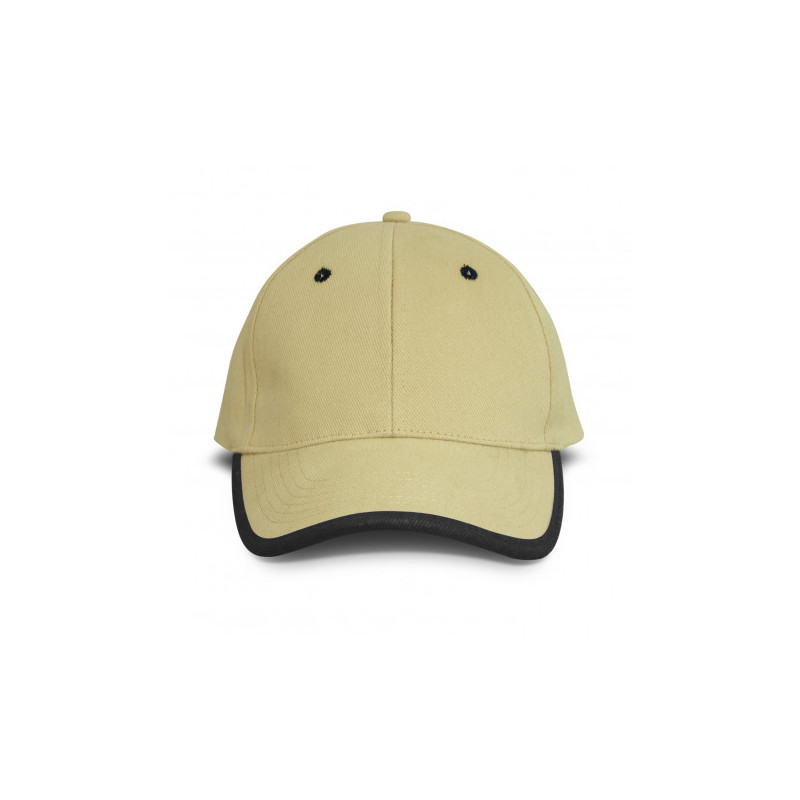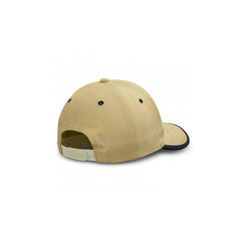 Cap in brushed cotton twill, with pre-curved peak and adjustable Velcro® strap at back. 6 Panel structured Cap|Pre-curved peak|Adjustable Velcro strap at back. |Product Material: 100% Cotton