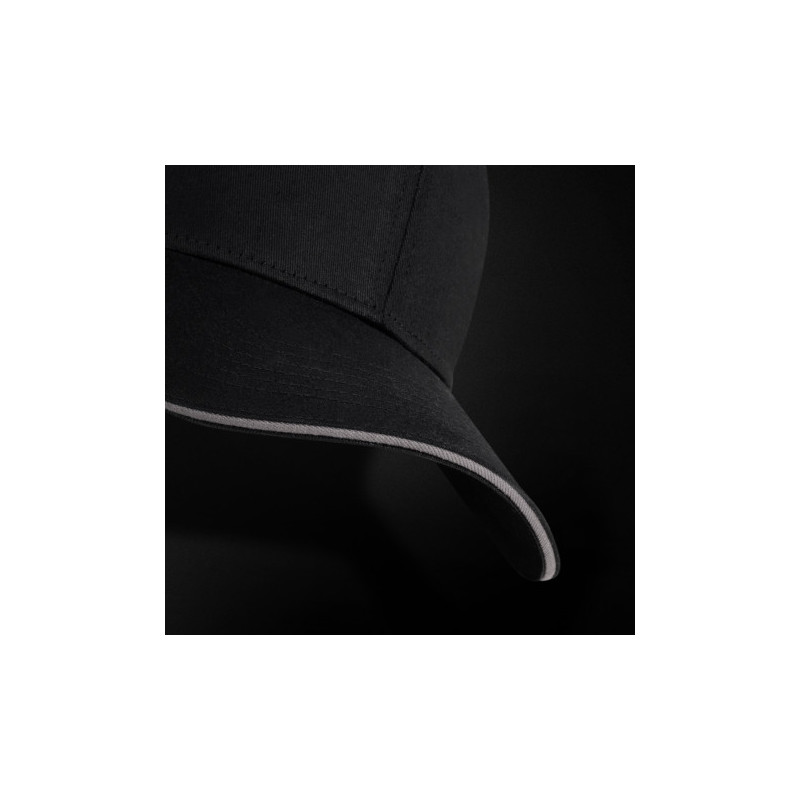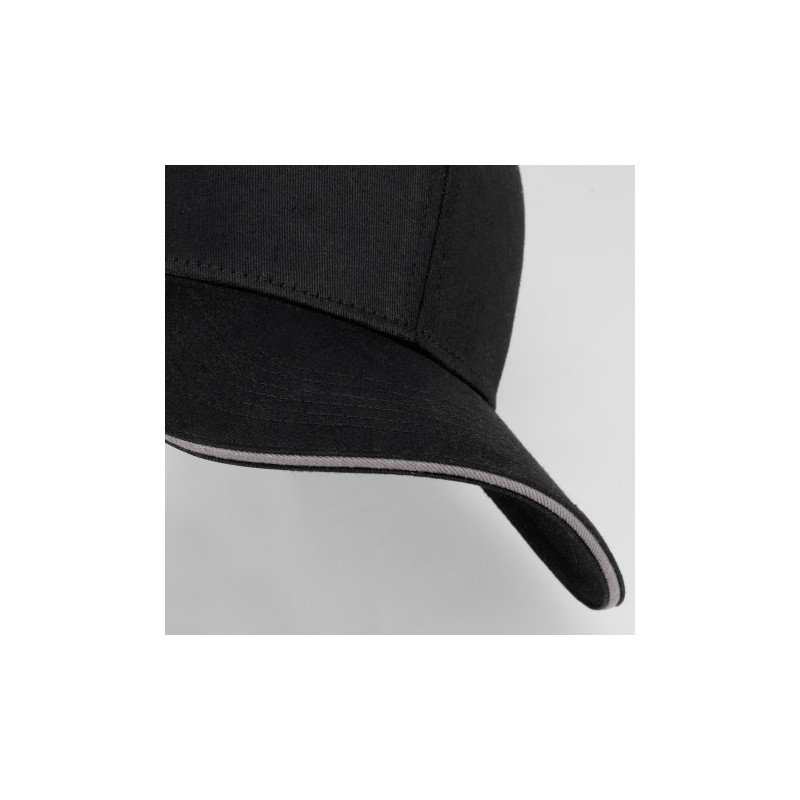 Cap in brushed cotton twill, with pre-curved peak and adjustable Velcro® strap at back. 6 Panel structured Cap|Pre-curved peak|Adjustable Velcro strap at back. |Product Material: 100% Cotton