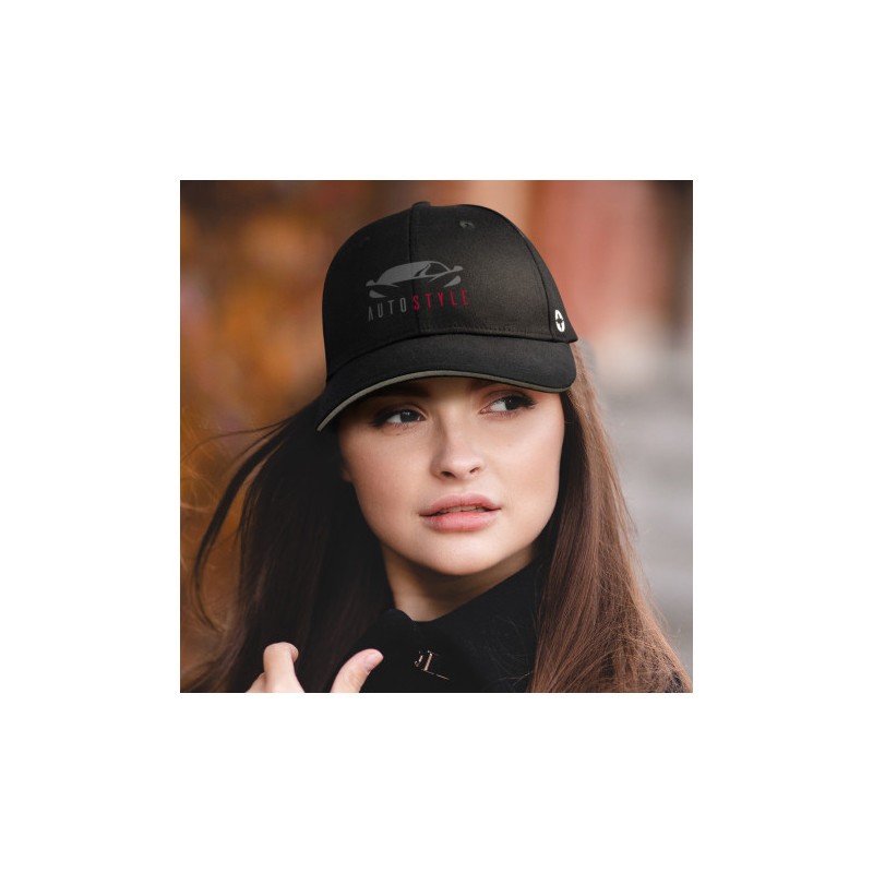Stylish 100% Cotton 5 panel curved peaked cap with a coloured stitching that matches the logo. It features an adjustable stainless-steel buckle, ensuring a comfortable fit for most head sizes.
