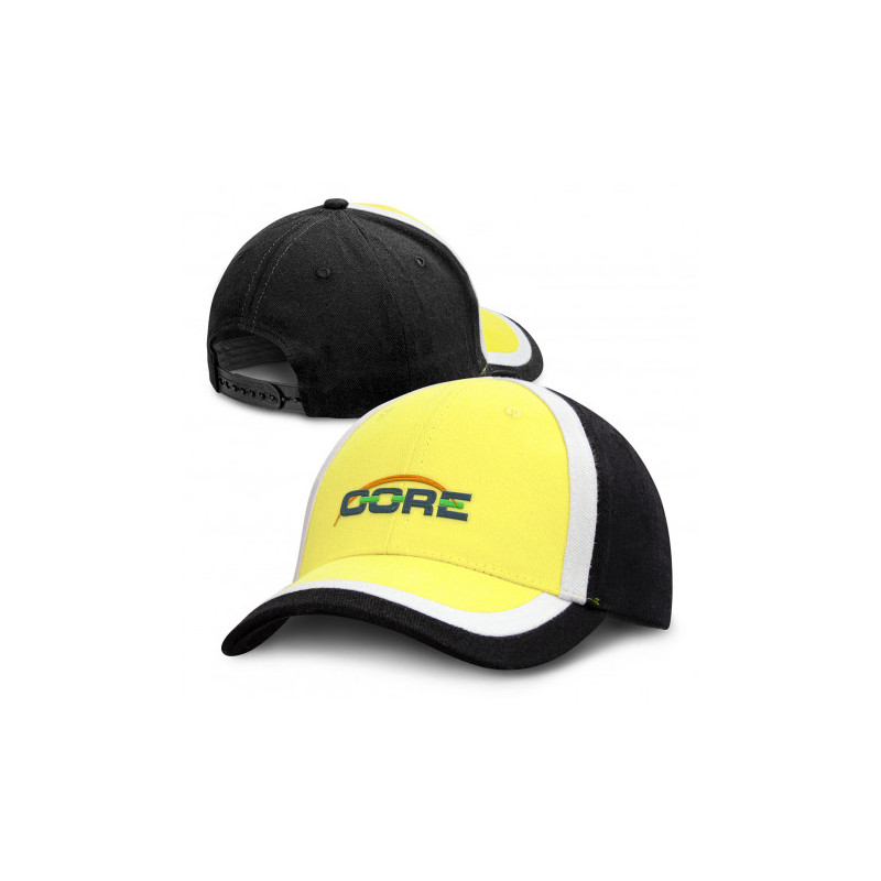 Premium quality structured five panel cap which is manufactured from 100% cotton. It features a coloured trim of your choice, embroidered eyelets, a pre-curved peak, a sweat band and an adjustable Velcro closure which allows one size to fit most people.
