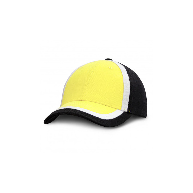 Cap in brushed cotton twill, with pre-curved peak and adjustable Velcro® strap at back. 6 Panel structured Cap|Pre-curved peak|Adjustable Velcro strap at back. |Product Material: 100% Cotton