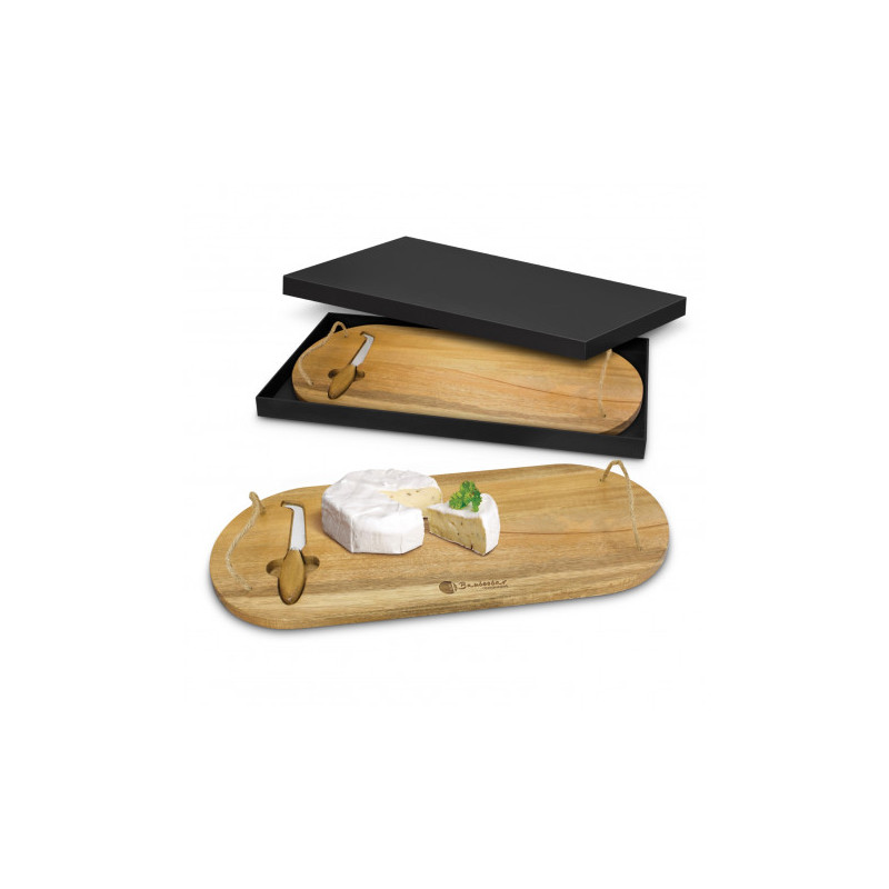 Trekko Cheeseboard and Knife Set is a popular promotional product and crafted from premium Acacia wood, comes with a set of 2 cheese knives and fork, held on one side of the cheese board by magnetite. Acacia wood is one of the most robust wood species in the world and is extremely resistant, each board is individually unique and they all have their own...