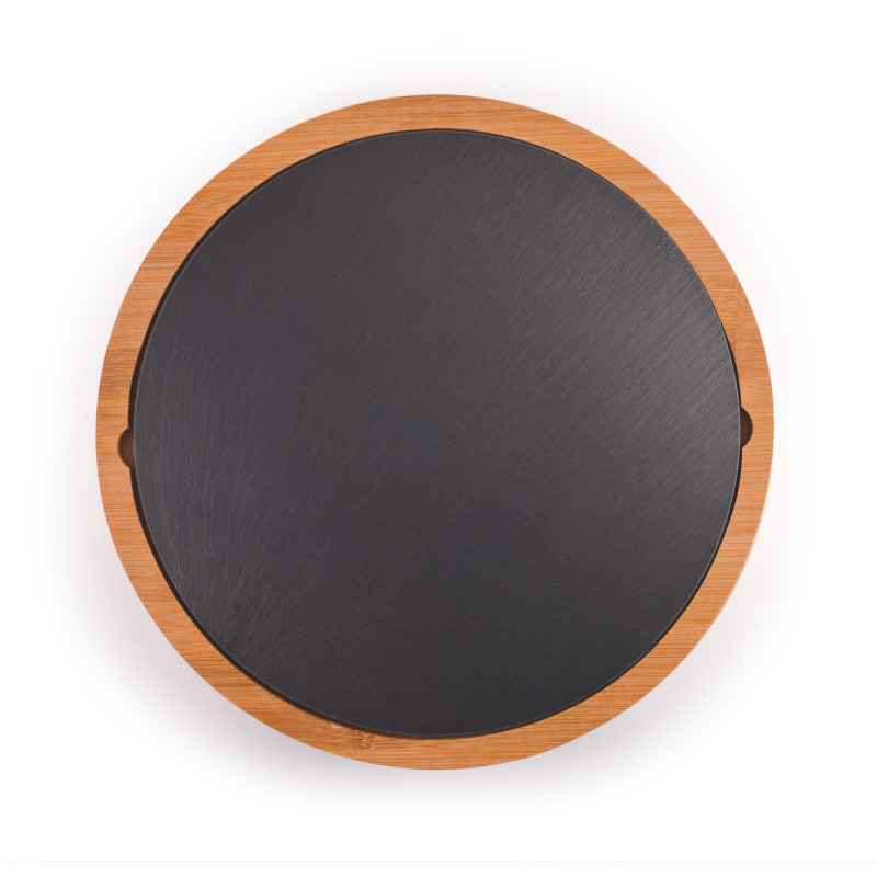 Luxury round slate cheese board set which includes a cheese knife and fork with natural bamboo handles. The cheese board has non-slip polyurethane pads on the base and the set is presented in a stunning corrugated cardboard gift box that opens like a book. Bamboo and slate are natural materials which produce unavoidable variances in the grain pattern and...