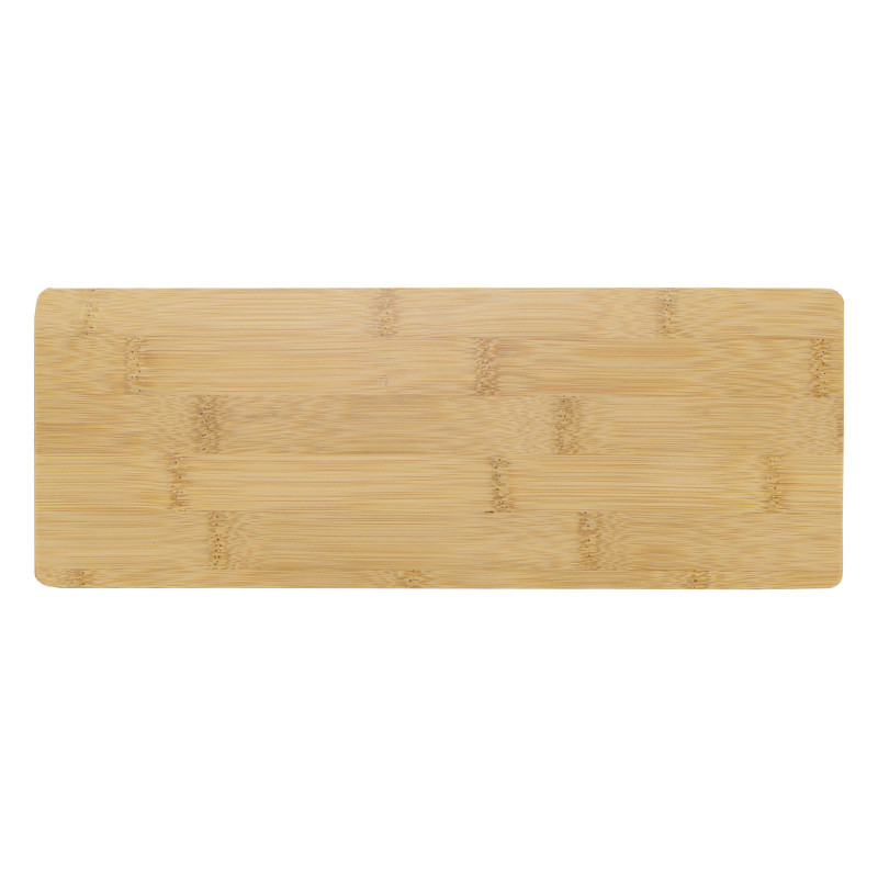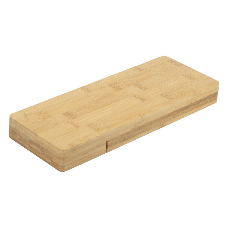 Quality rectangular bamboo cheese board with a slide out cutlery drawer including two cheese knives and a cheese fork. Kensington is presented in a natural packaging with NATURA branding.