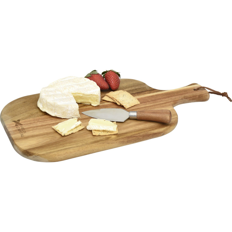 Trekko Cheeseboard and Knife Set is a popular promotional product and crafted from premium Acacia wood, comes with a set of 2 cheese knives and fork, held on one side of the cheese board by magnetite. Acacia wood is one of the most robust wood species in the world and is extremely resistant, each board is individually unique and they all have their own...