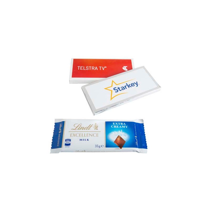 We know how important it is to see and feel a product before you buy, especially when ordering merchandise for conferences, for corporate and promotional gifts. We offer samples of our 35g Lindt Chocolate Bar Packed in silver or white Box - Large custom label to help you make an informed decision.