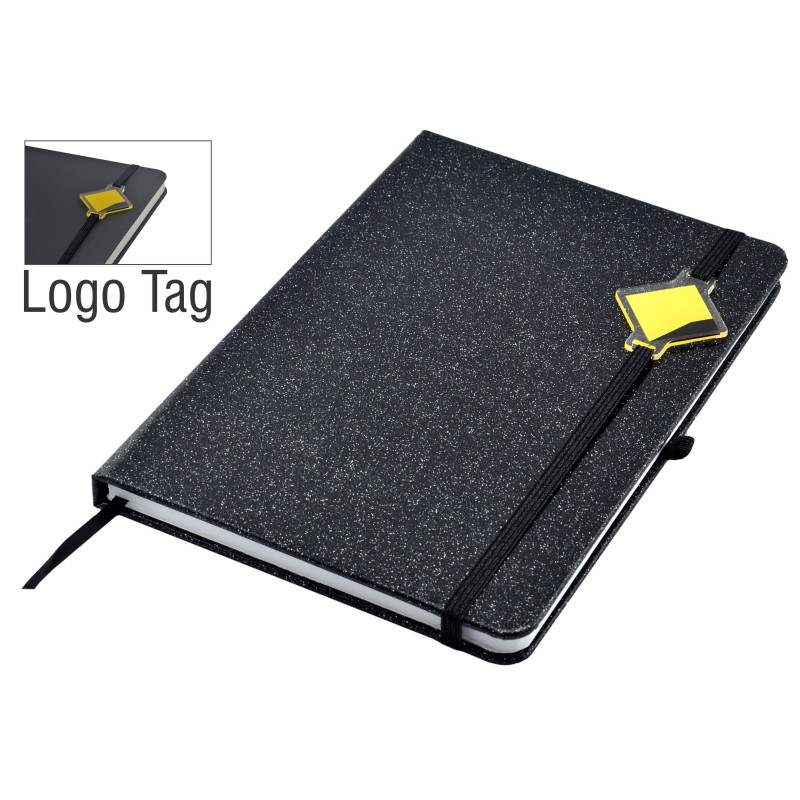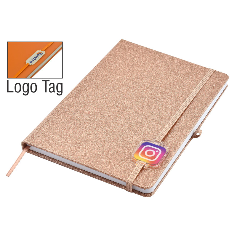 These stylish A6 notebooks are guaranteed to receive attention. Featuring a natural coloured Bonded Leather hard cover with edge stitching, 9mm wide natural coloured elastic closure, pen loop, marker ribbon and 192 pages of high quality cream paper. LOGO TAG OPTION: Our latest decorating technique for this notebook is the addition of a LogoTag. Made from...