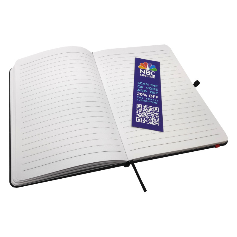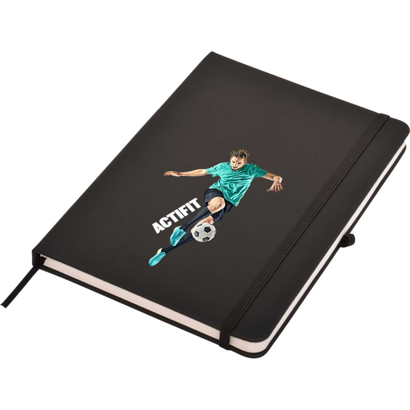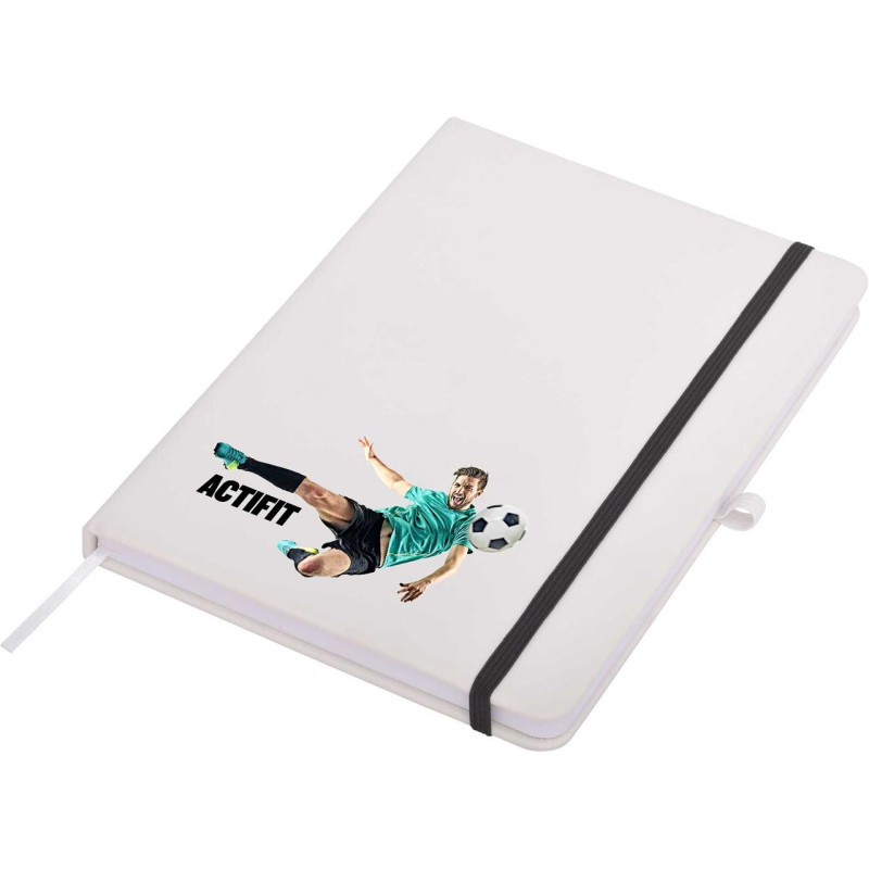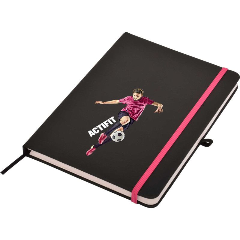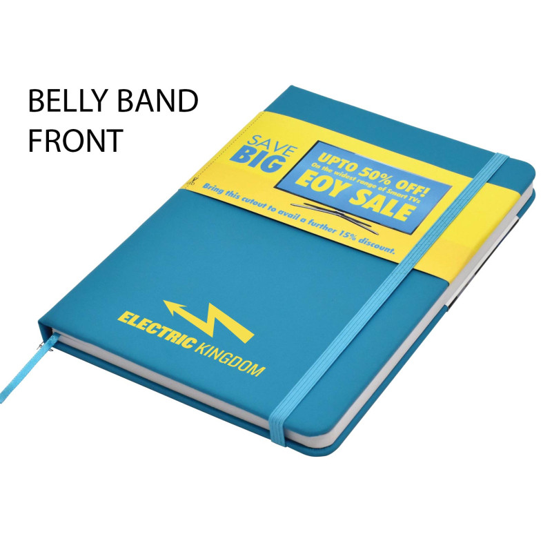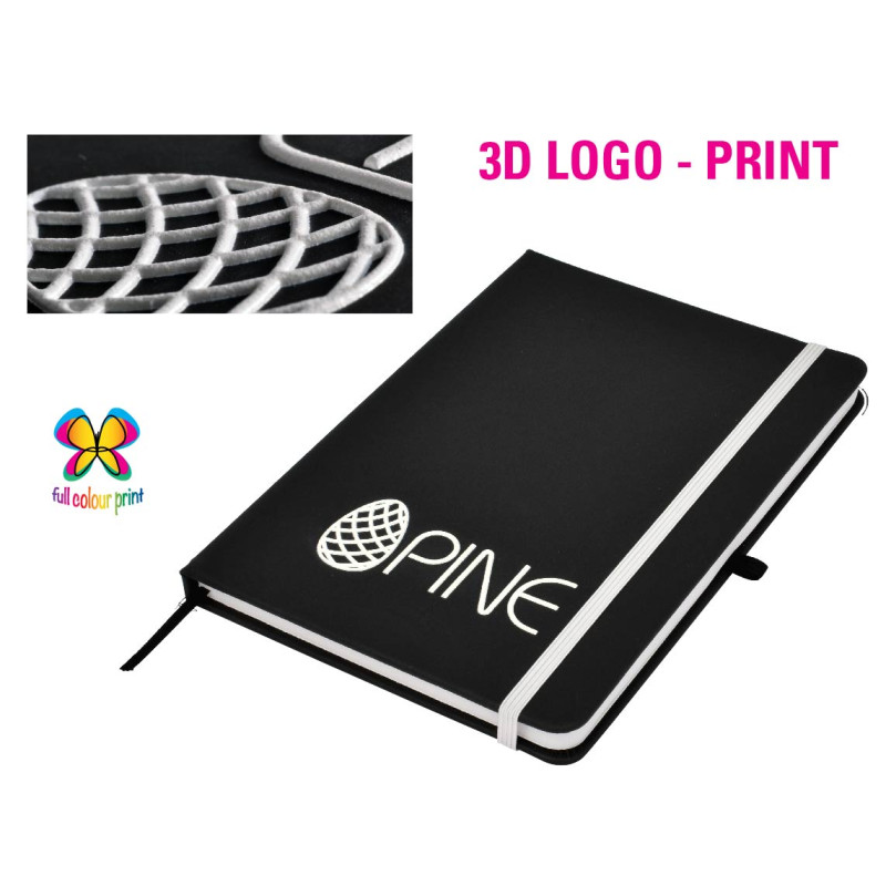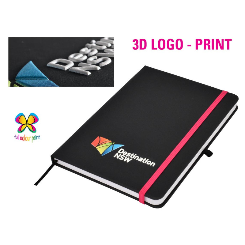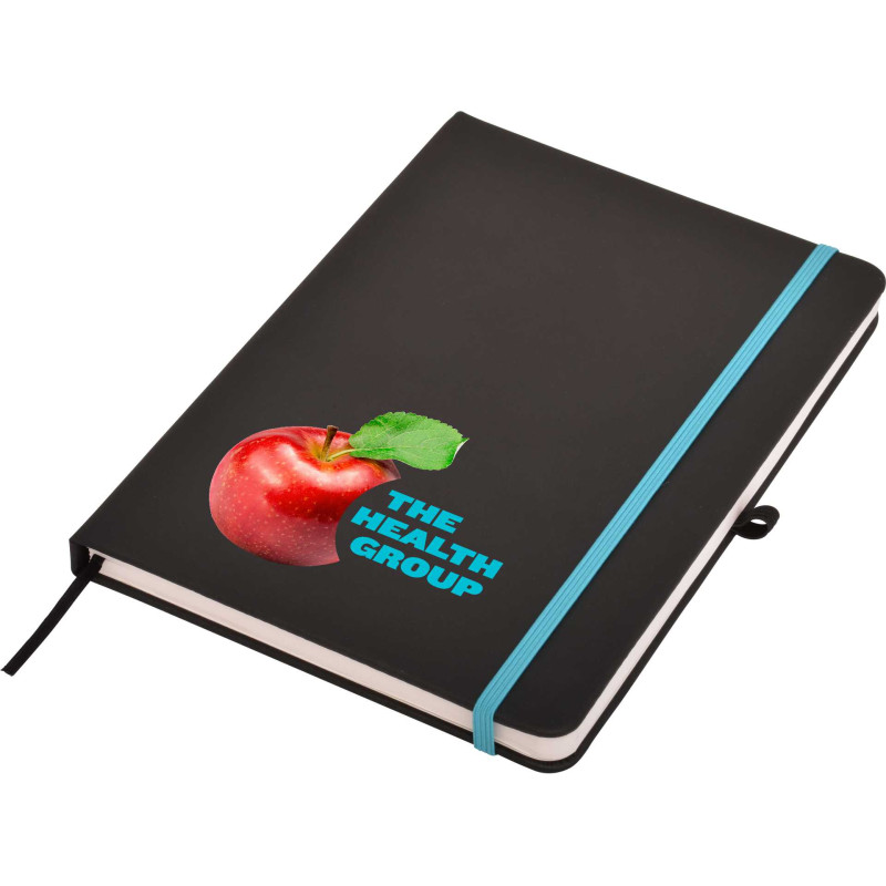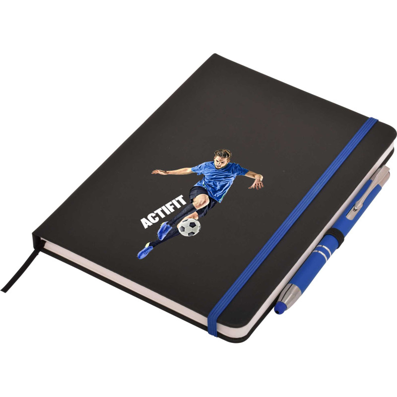 This quality A5 notepad features a leather-feel PU cover, colour co-ordinated elastic closure and designer matching pen. Available in blue, red and black. DIGITAL PRINTING OPTION: A slightly raised print effect is achieved automatically when printing in White or printing in Colour on top of a printed White base. If you require a Thick Raised Print please...