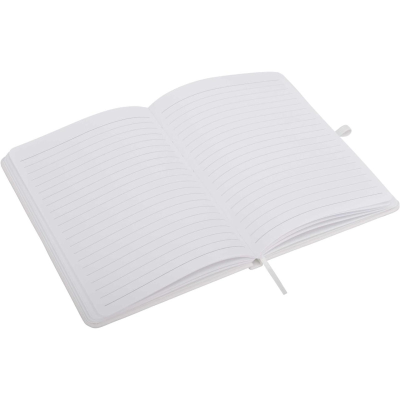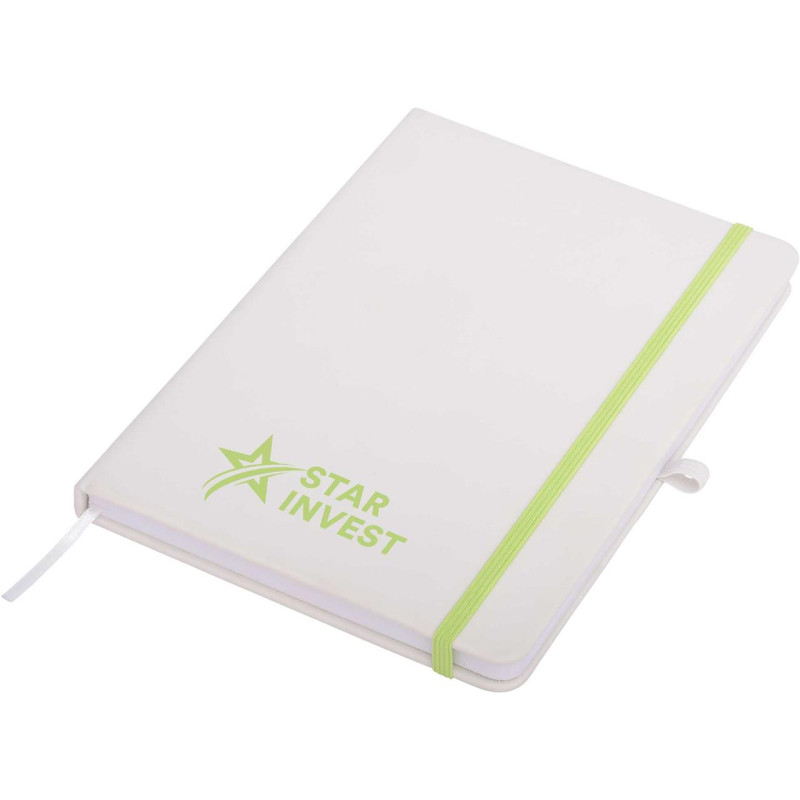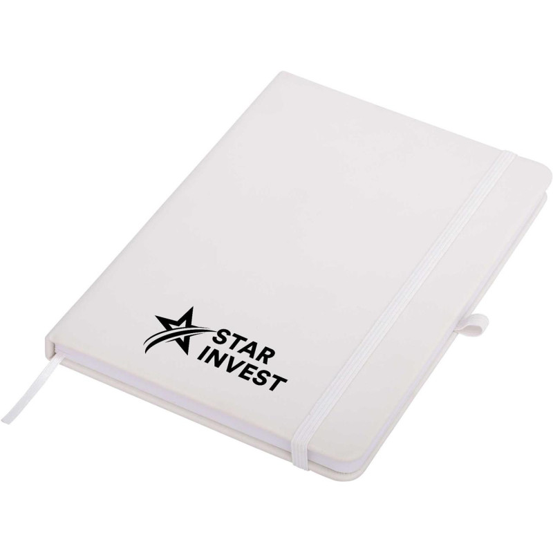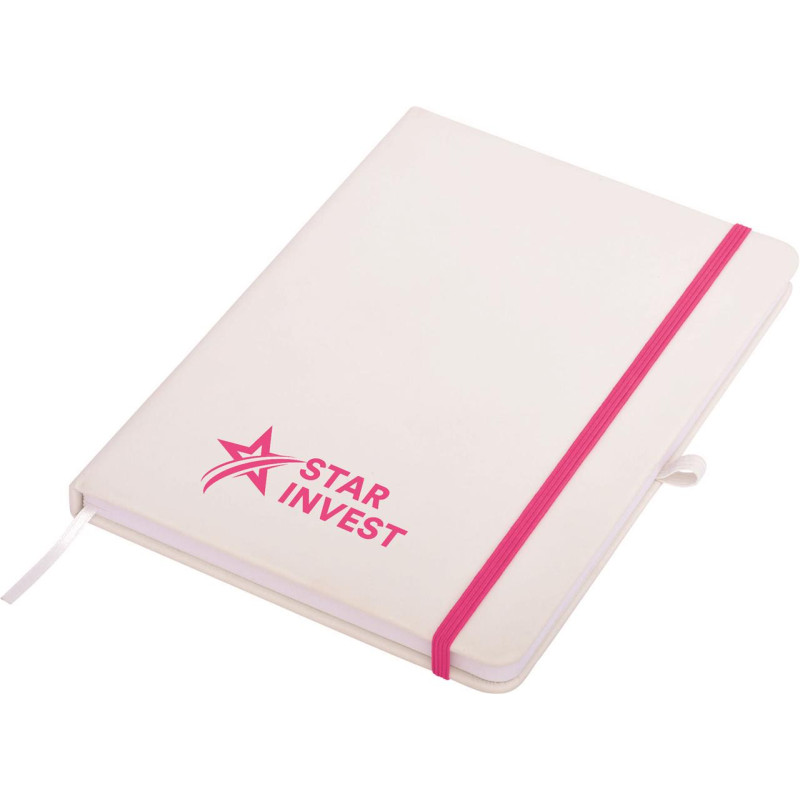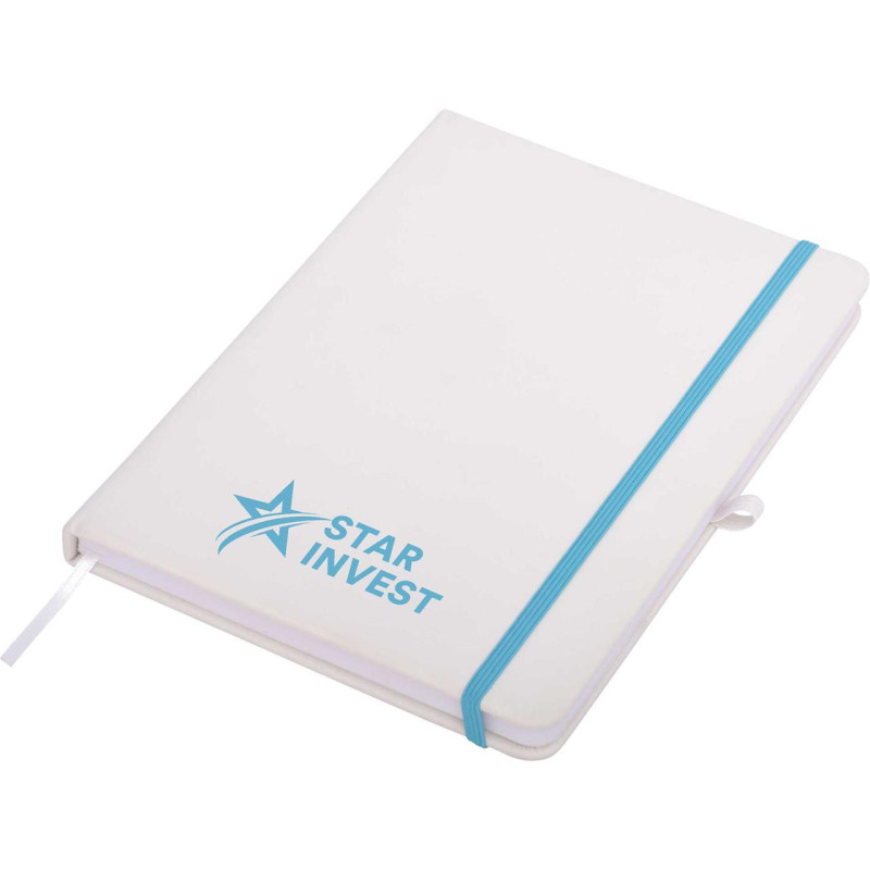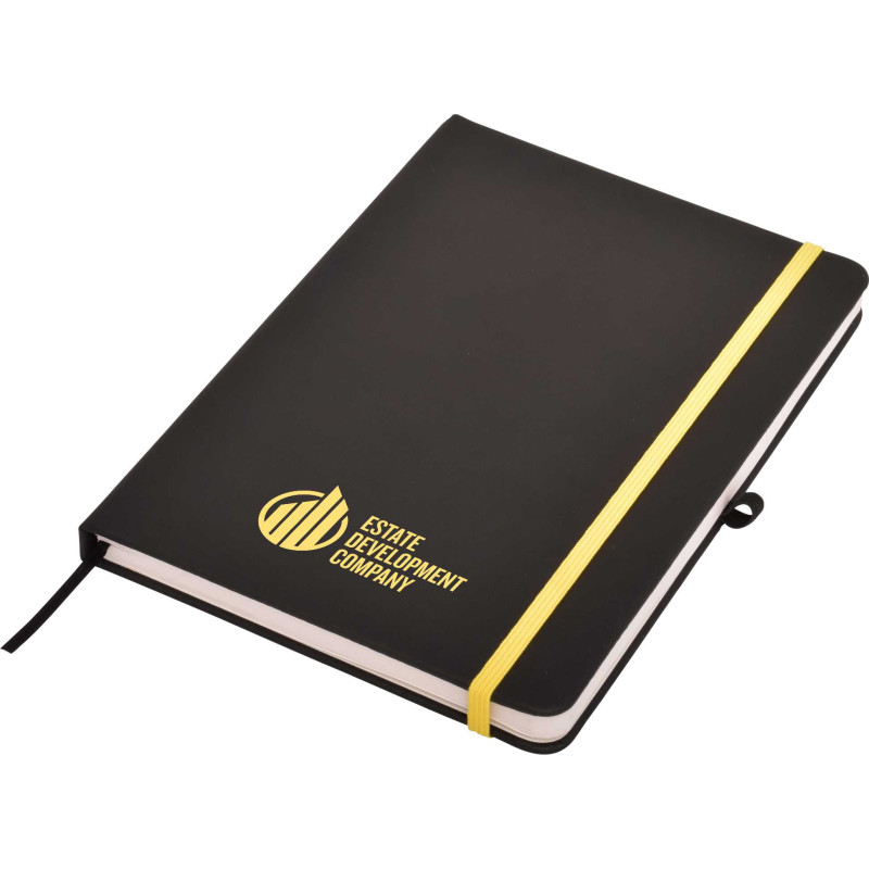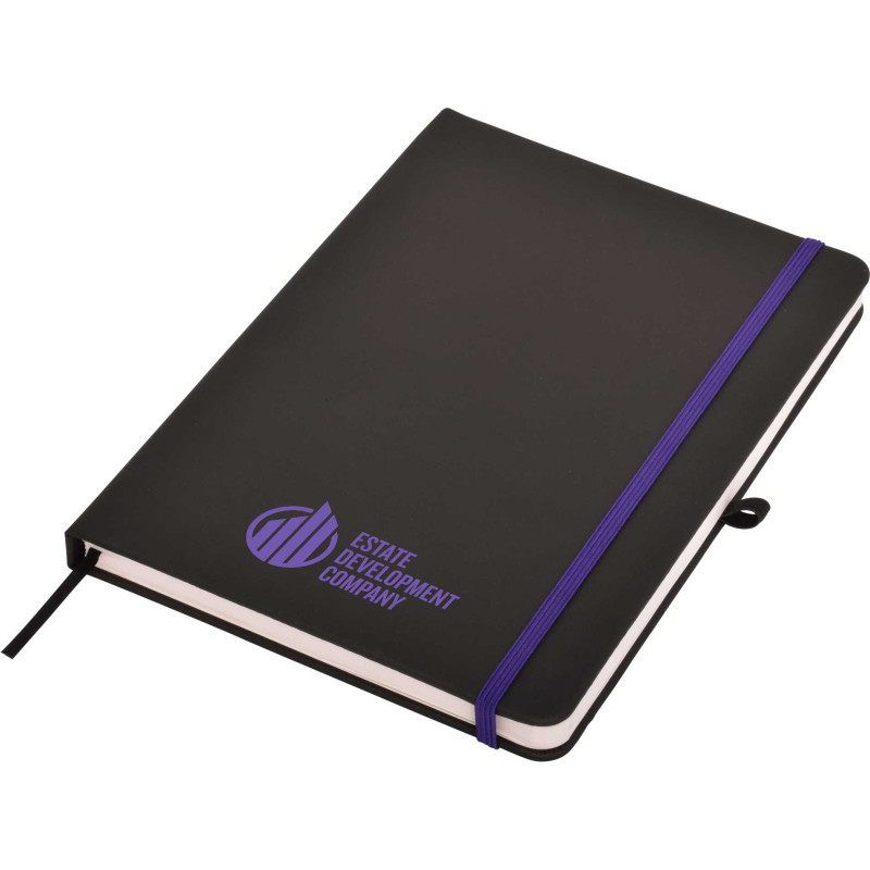 This quality A5 notepad features a soft leather-feel cover, elastic closure, ribbon marker and cream coloured lined pages. Available in black, navy and white, all with black elastic. Optional Gift Box W17 available. If youre after a debossed notebook, check these out!