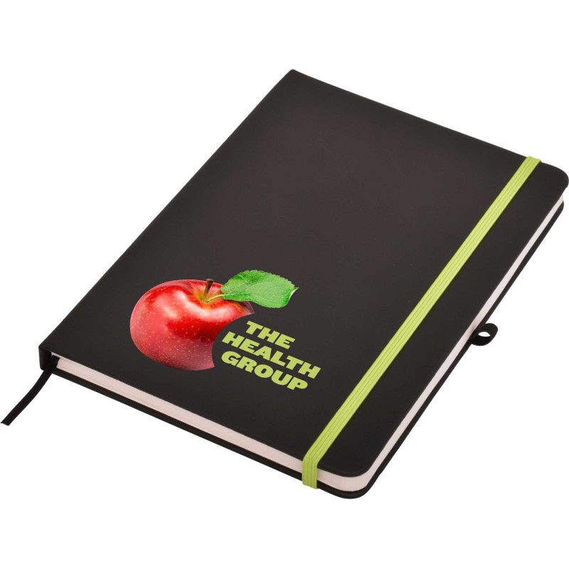 If youre looking for a notebook with a natural look and feel, take a look at our Eco Plus A5 Notebook. Featuring a hard cover wrapped with unbleached craft paper, cream inner pages, as well as a choice of 10 vibrant elastic closure colours, a natural coloured pen loop and page marker ribbon. Available with full colour print for maximum impact. Notebook...