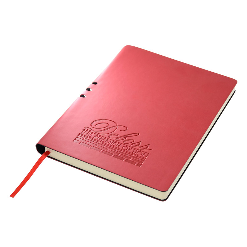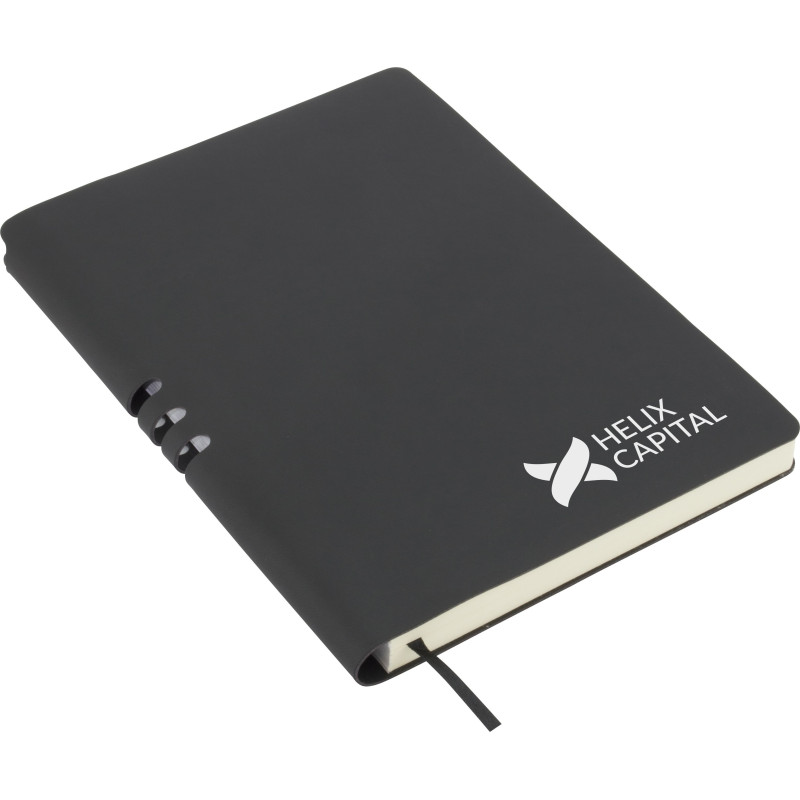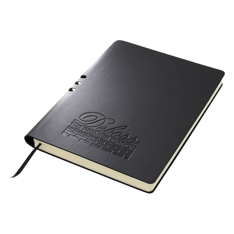 This quality A5 notepad features a soft leather-feel cover, elastic closure, ribbon marker and cream coloured lined pages. Available in black, navy and white, all with black elastic. Optional Gift Box W17 available. If youre after a debossed notebook, check these out!