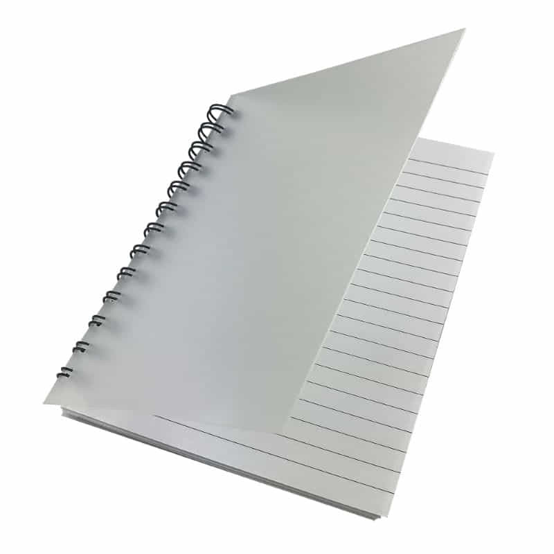 These budget priced A4 notebooks feature a wood grain design, spiral binding (which allows the solid cover to be folded flat behind the book – for ease of use) as well as elastic closure. Available in metallic blue or metallic white.