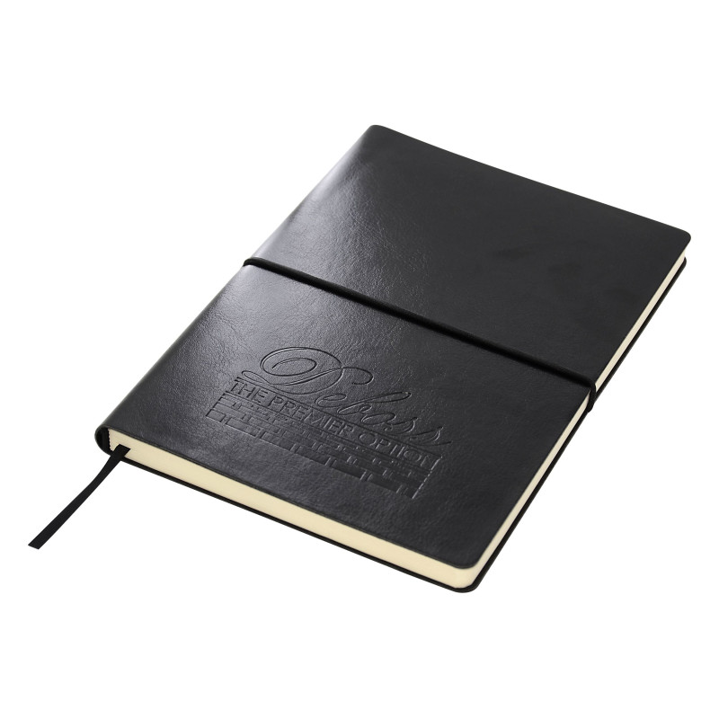 This quality A5 notepad features a leather-feel PU cover, colour co-ordinated elastic closure and designer matching pen. Available in blue, red and black. DIGITAL PRINTING OPTION: A slightly raised print effect is achieved automatically when printing in White or printing in Colour on top of a printed White base. If you require a Thick Raised Print please...