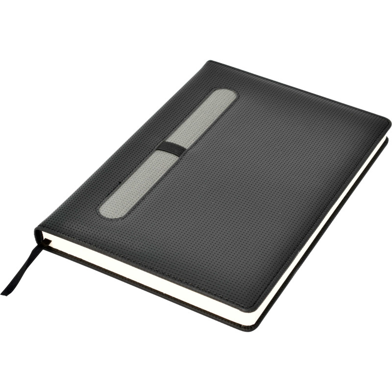 Oslo A5 Notebook is so much more than just a notebook. It’s designed to free your hands while you’re out and about by providing a secure place to hold your mobile phone, pen, business cards and much more. Crafted from the latest fabric inspired materials and available in grey, navy or black. Optional gift box available, see W17. If youre after a debossed...