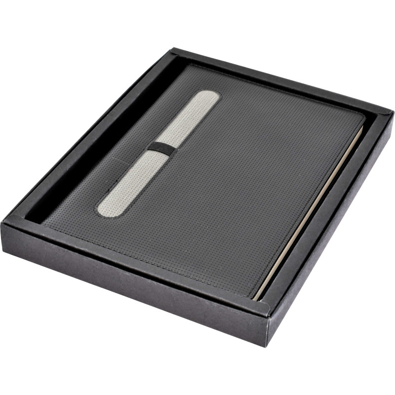 Think you have seen it all…well not until you have seen Toronto A5 Notebook. Made with a soft rubber-feel leatherette cover with contrasting textured trim, it features a zip pocket ideal for keeping cards, money, passport etc. Available in black with grey trim. Notebook Gift Box is optional extra - see W17