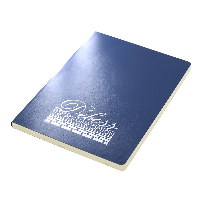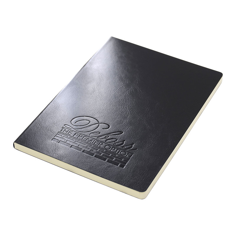 This quality A5 notepad features a soft leather-feel cover, elastic closure, ribbon marker and cream coloured lined pages. Available in black, navy and white, all with black elastic. Optional Gift Box W17 available. If youre after a debossed notebook, check these out!